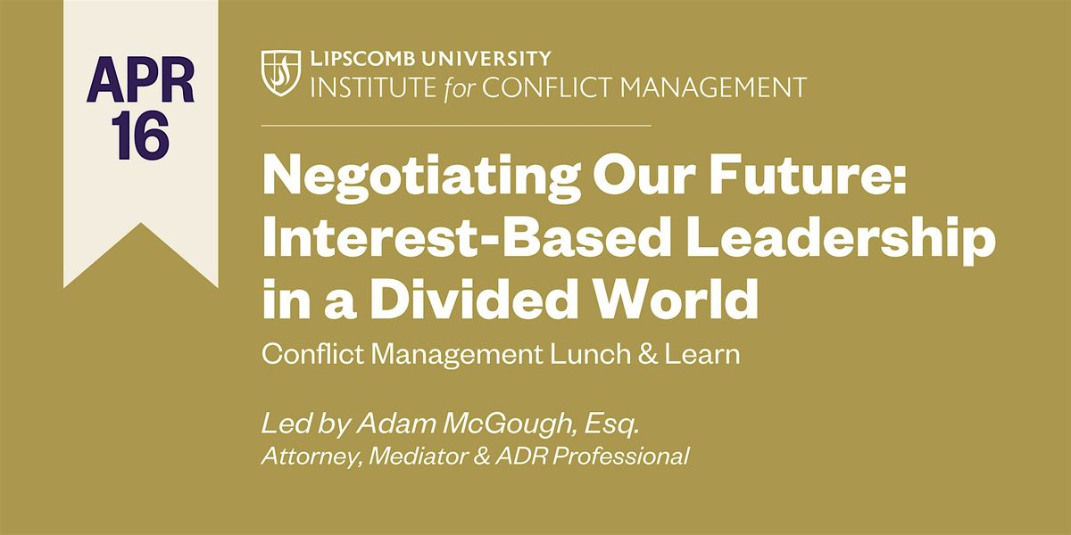 Join us either in-person or virtually on Thursday, April 16 for "Negotiating Our Future: Interest-Based Leadership in a Divided World." The lunch and learn session is led by Adam McGough, Esq., an expert mediator and Lipscomb Institute for Conflict Management's newest mediation training instructor.
