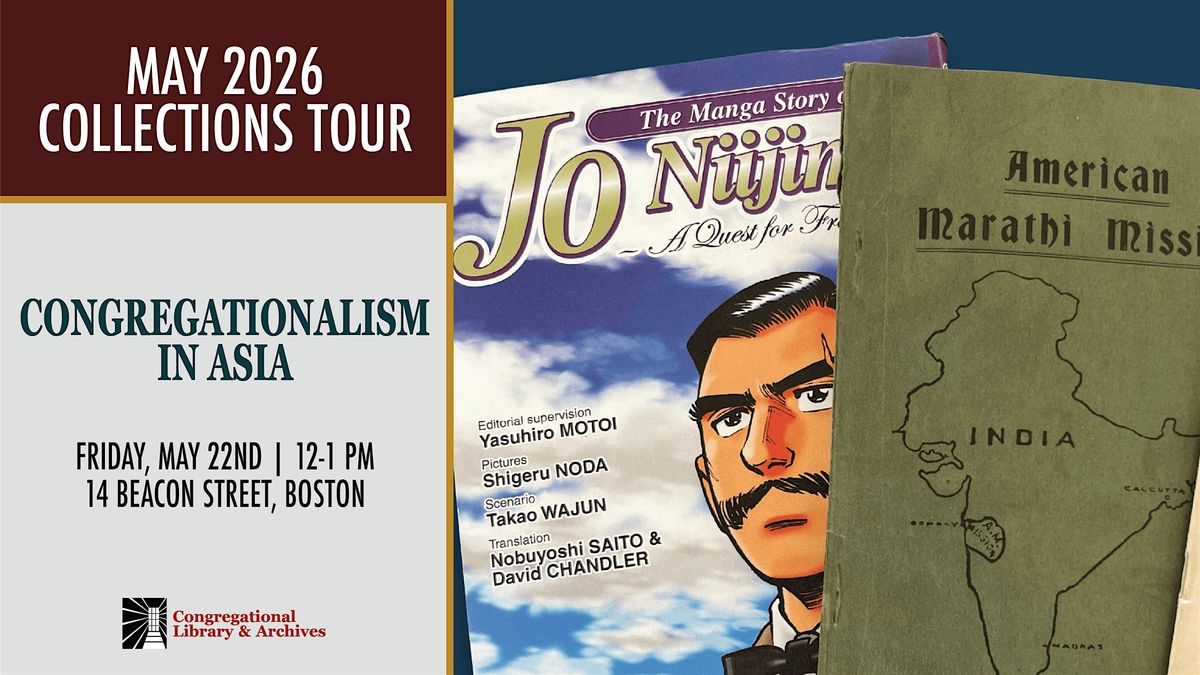 The Congregational Library & Archives collections include many items related to missionary work in Asia, especially in places like Japan, China, and India. This tour will include a variety of material like scrapbooks, pamphlets, letters, and more from this fascinating aspect of Congregational history.
