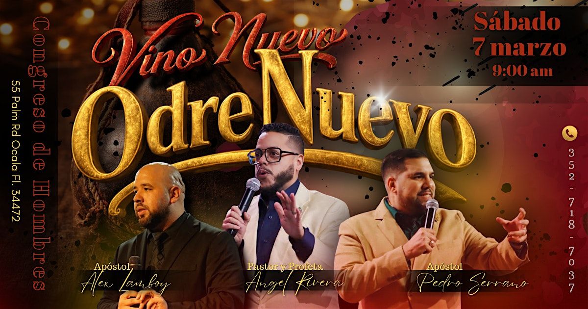 Bienvenidos a Congreso de Hombres Vino Nuevo Odre Nuevo el cual se estará llevando a cabo en 55 Palm Rd en March 7, 2026 at 9:00 AM . De parte de este tiempo lleno depalabra viva y edificante para llenarle a un tiempo de transformación y equipamiento , lleno del poder de Dios para ser ese odre nuevo , listo para recibir lo nuevo de Dios. Un tiempo para conectar con hombres de Dios y crecer juntos. No te pierdas este poderoso evento.