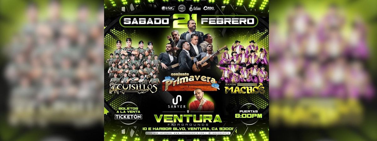 Don't miss CONJUNTO PRIMAVERA, CUISILLOS, BANDA MACHOS happening at Ventura Fairgrounds, Ventura, CA, United States on 2026-02-21T20:00:00-08:00. A great evening with good music and a laid-back atmosphere awaits you. Invite your friends for a night out! **Event Details:** * **Location:** Ventura Fairgrounds, Ventura, CA, United States Book your attendance today and be part of something extraordinary. #CONJUNTOPRIMAVERA,CUISILLOS,BANDAMACHOS #event #exciting #VenturaEvents #CAEvents
