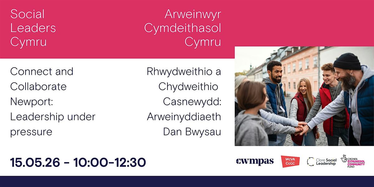 This event is part of the Social Leaders Cymru programme funded by the National Lottery Community Fund. Social Leaders Cymru is a partnership programme delivered by Cwmpas, WCVA and Clore Social Leadership. The programme has supported place-based leadership cohorts in Wrexham, Newport, Swansea, and online through our Emerging and Experienced Leaders streams.