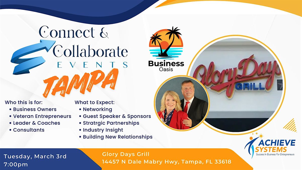 Join us for an evening of meaningful networking, collaboration, and expert insights at The Connect & Collaborate Tampa Events by Business Oasis Networking, Tampa’s premier business networking experience for entrepreneurs, veterans, professionals, and small business leaders.