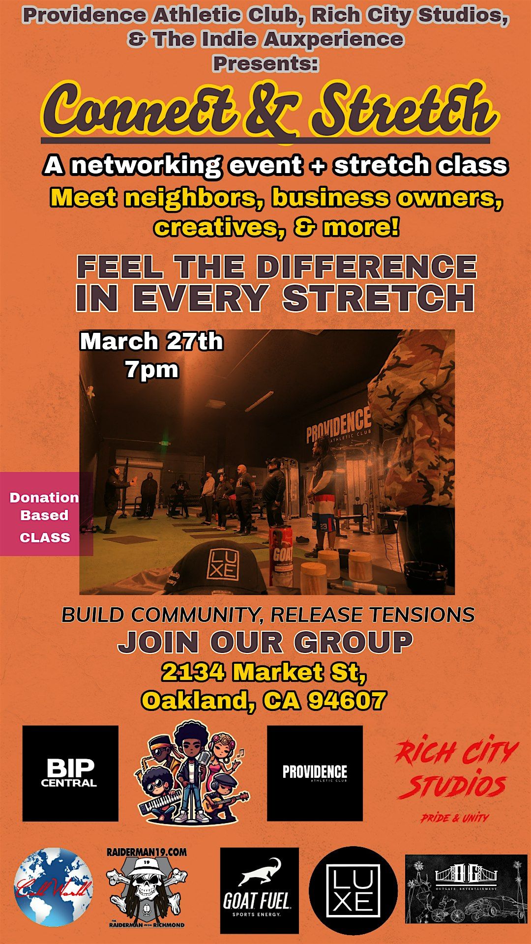 Connect & Stretch is a monthly wellness‑driven networking experience hosted at Providence Athletic Club, designed for creatives, entrepreneurs, musicians, and anyone seeking a healthier, more connected way to build community.
