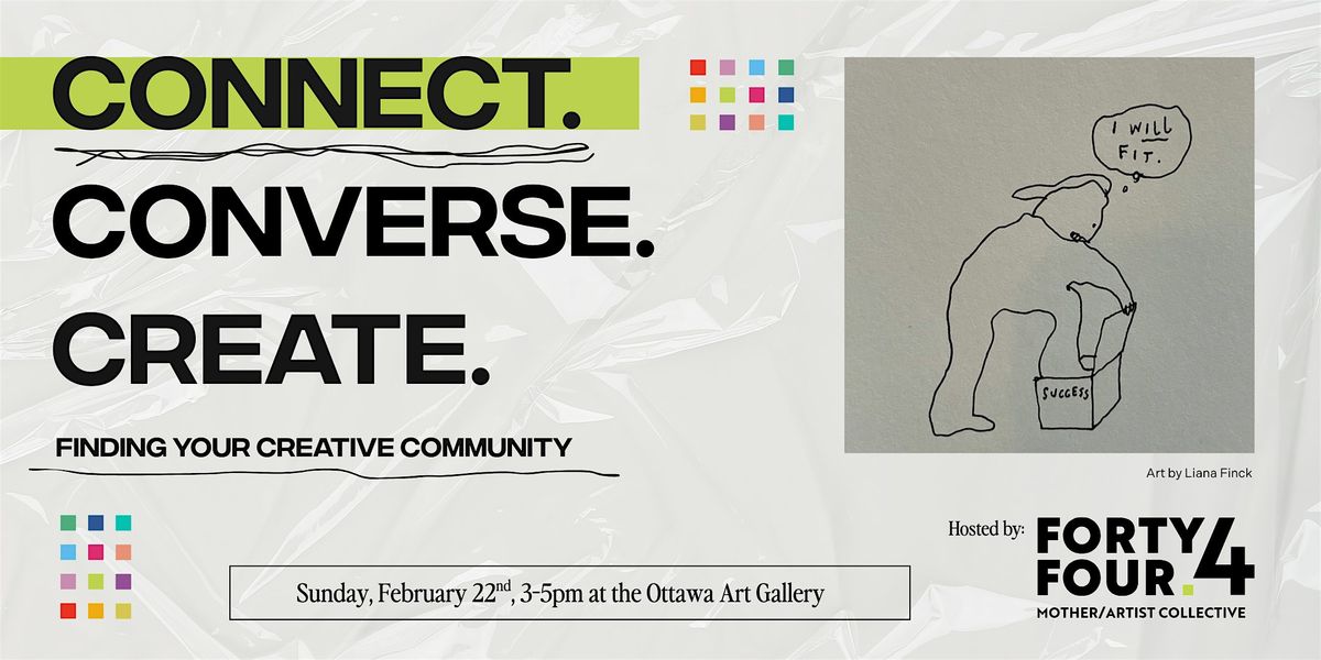 Each session will have a focus on one particular C, but don’t worry, we promise to deliver all 3C’s in each InReach! This year at the Ottawa Art Gallery, 44.4 will cultivate Connections so you can find your supportive arts community by beginning Conversations that will invigorate your creative life, all while Creating small works reflective of our discussions.
