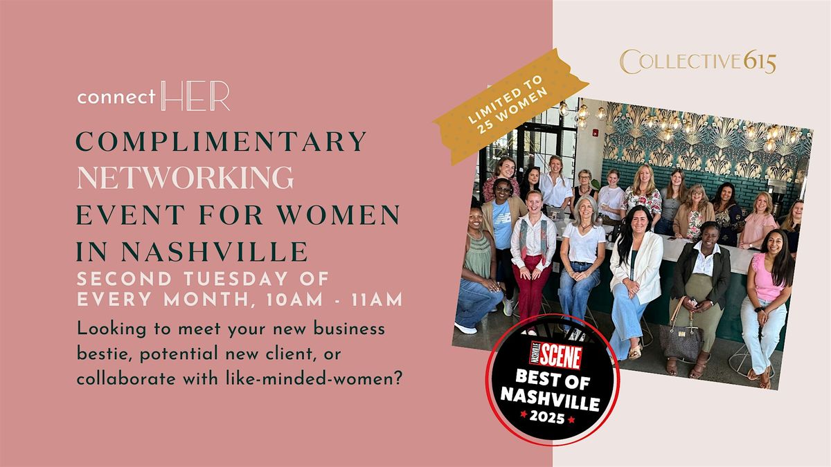 ConnectHER is an intentional networking opportunity on the 2nd Tuesday of every month from 10am-11am at Collective615. What can you expect?