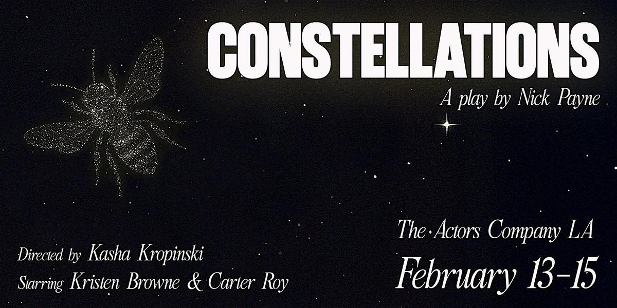 Constellations follows Marianne, a physicist, and Roland, a beekeeper, as their relationship unfolds across parallel universes. Through repeated moments and shifting choices, the play explores love, fate, free will, and how small decisions shape entire lives.