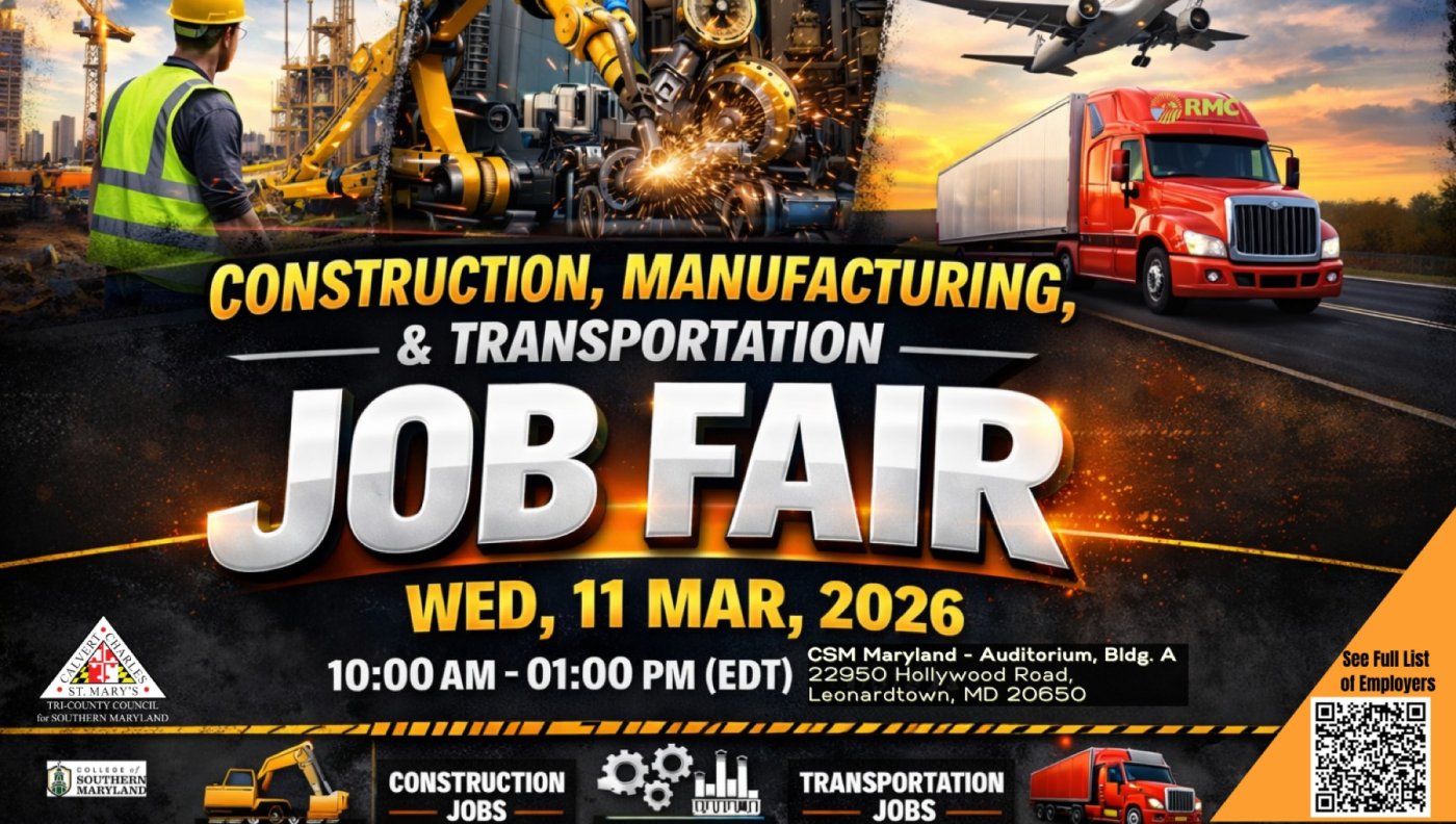 Come prepared, bring copies of your resume, and get ready to build your future at the Construction, Manufacturing & Transportation Job Fair in Leonardtown, Maryland.