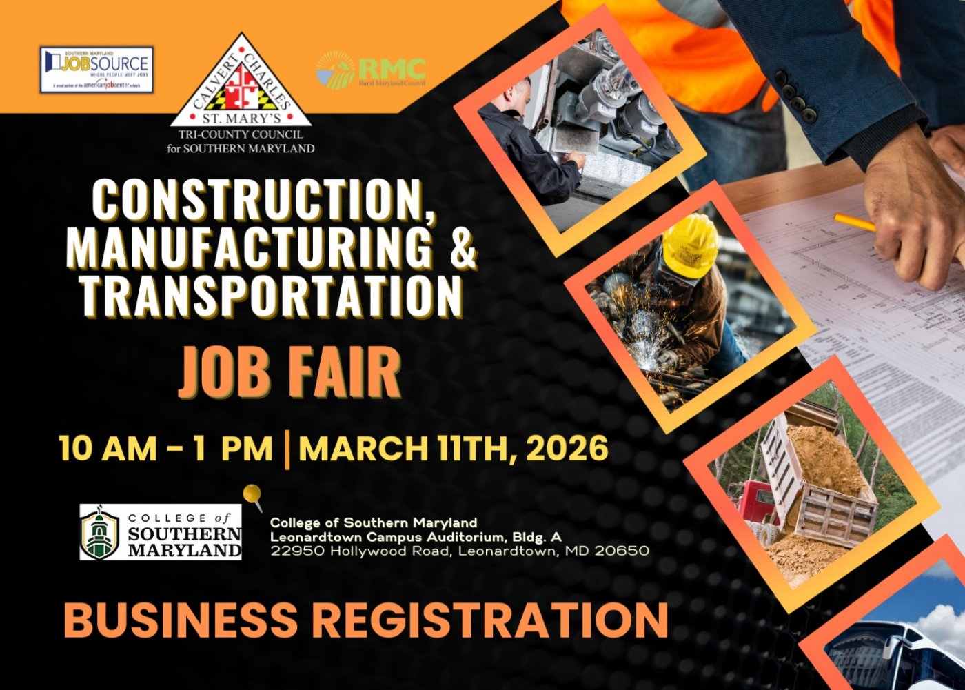 Join Tri-County Council for Southern Maryland for a targeted recruitment opportunity designed specifically for construction, manufacturing, and transportation employers. This industry-focused job fair connects forward-thinking businesses with skilled, motivated job seekers ready to step into critical roles.