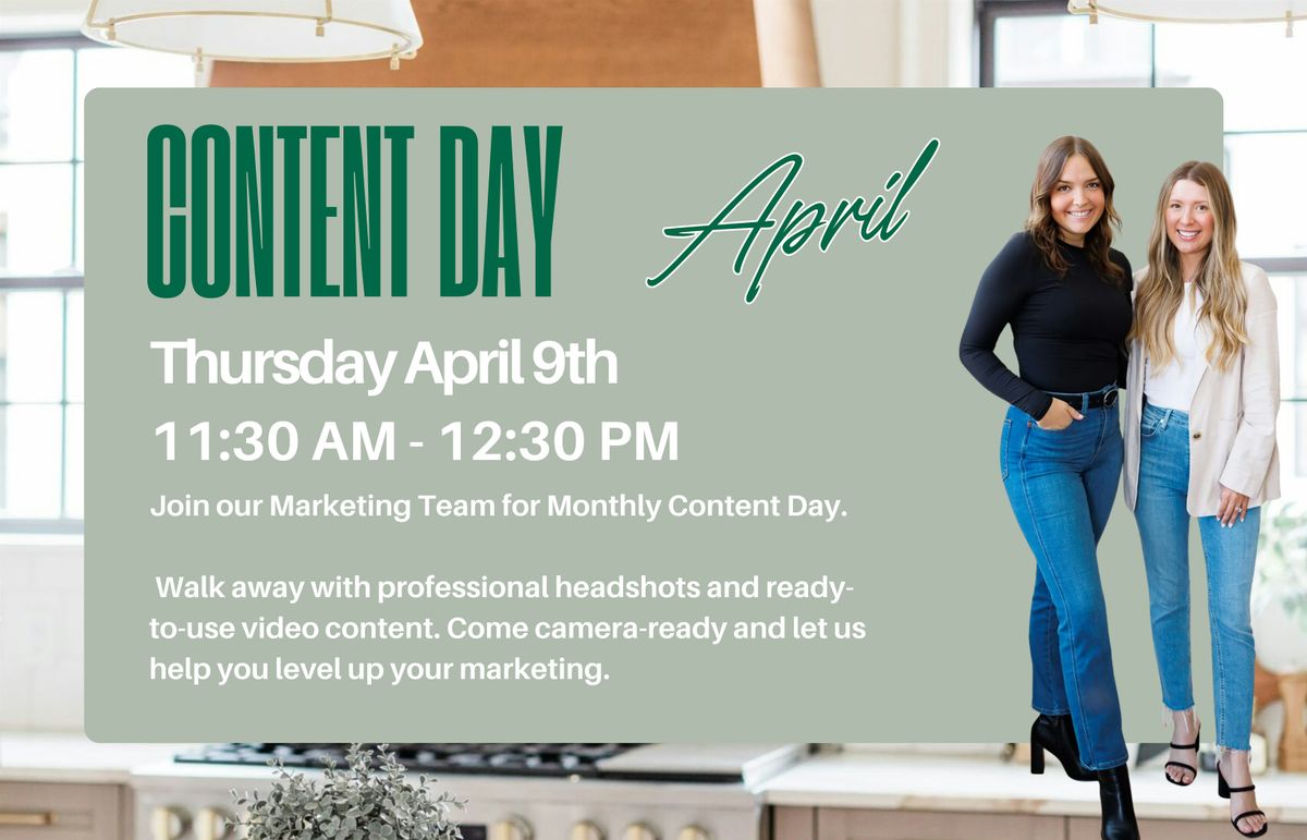 Join our Marketing Team for Content Day! Get pro headshots and ready-to-post videos. Come camera-ready and level up your brand!About this Event
