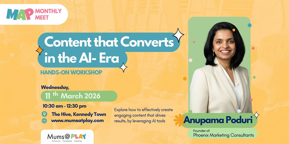 Join this AI-tools focused, 2-hour hands-on workshop designed for solopreneurs and women entrepreneurs who want create better content, faster. Led by an experienced marketing consultant, this session cuts through the tech jargon and shows you how to apply AI tools and proven content strategies while manintaining authenticity.