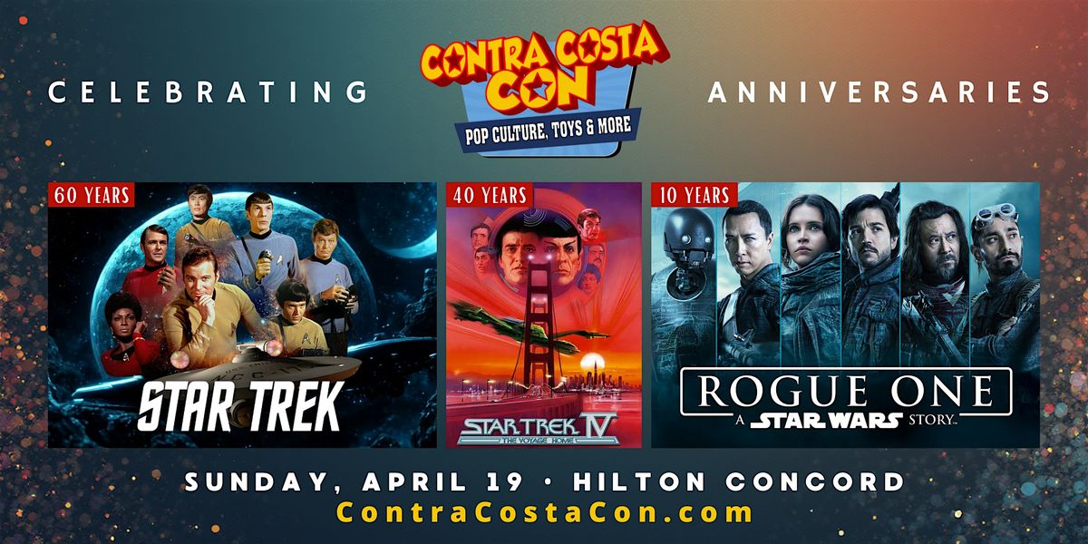 Contra Costa Con 2026 Star Wars & Star Trek Celebration is Sunday, April 19, at the Hilton Concord Hotel in Concord featuring actors and creative talents from the Star Wars and Star Trek families.