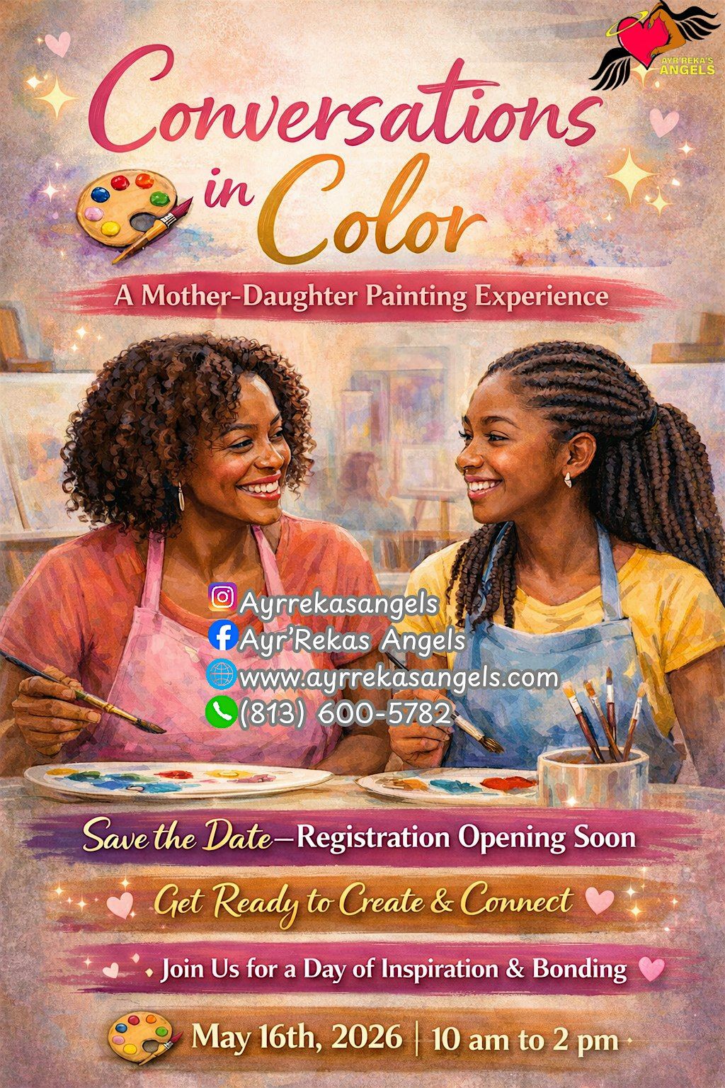 Join us for a heartwarming and inspiring day designed to strengthen the bond between mothers and daughters through creativity, conversation, and connection. Conversations in Color is more than just a paint event — it’s an experience filled with laughter, love, encouragement, and meaningful moments.