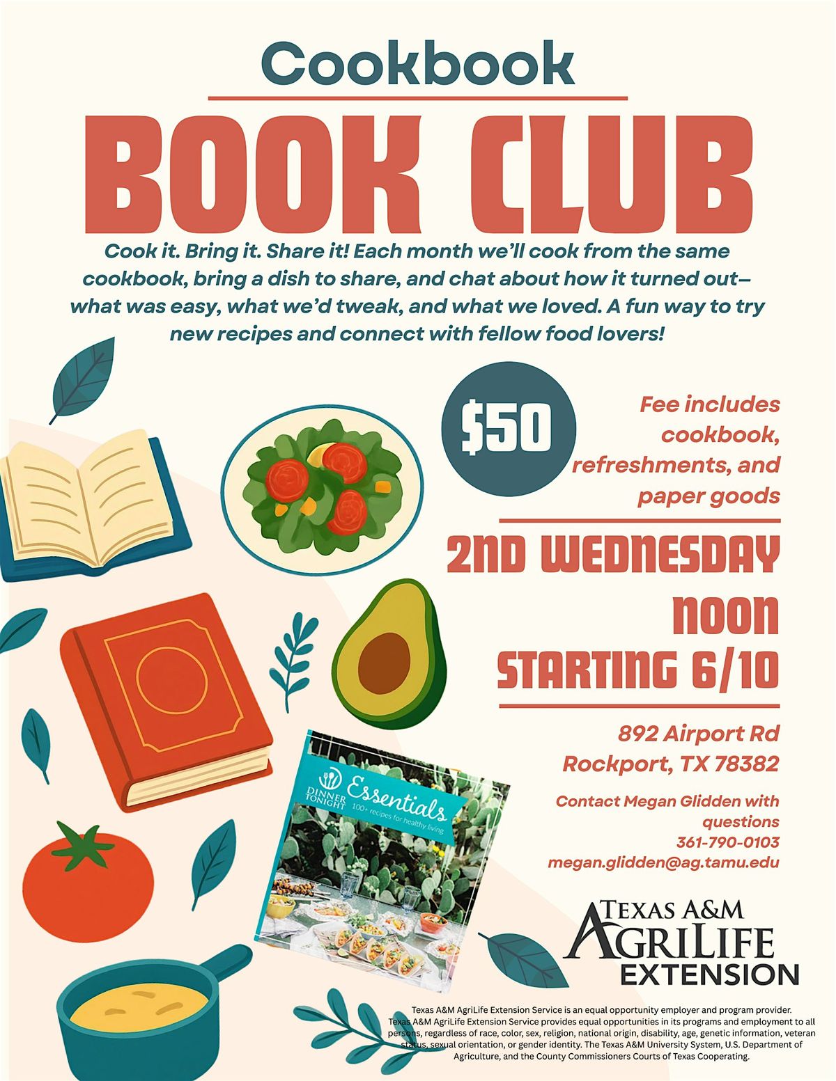 Join us for our Cookbook Book Club at Texas A&M AgriLife Extension - Aransas County.