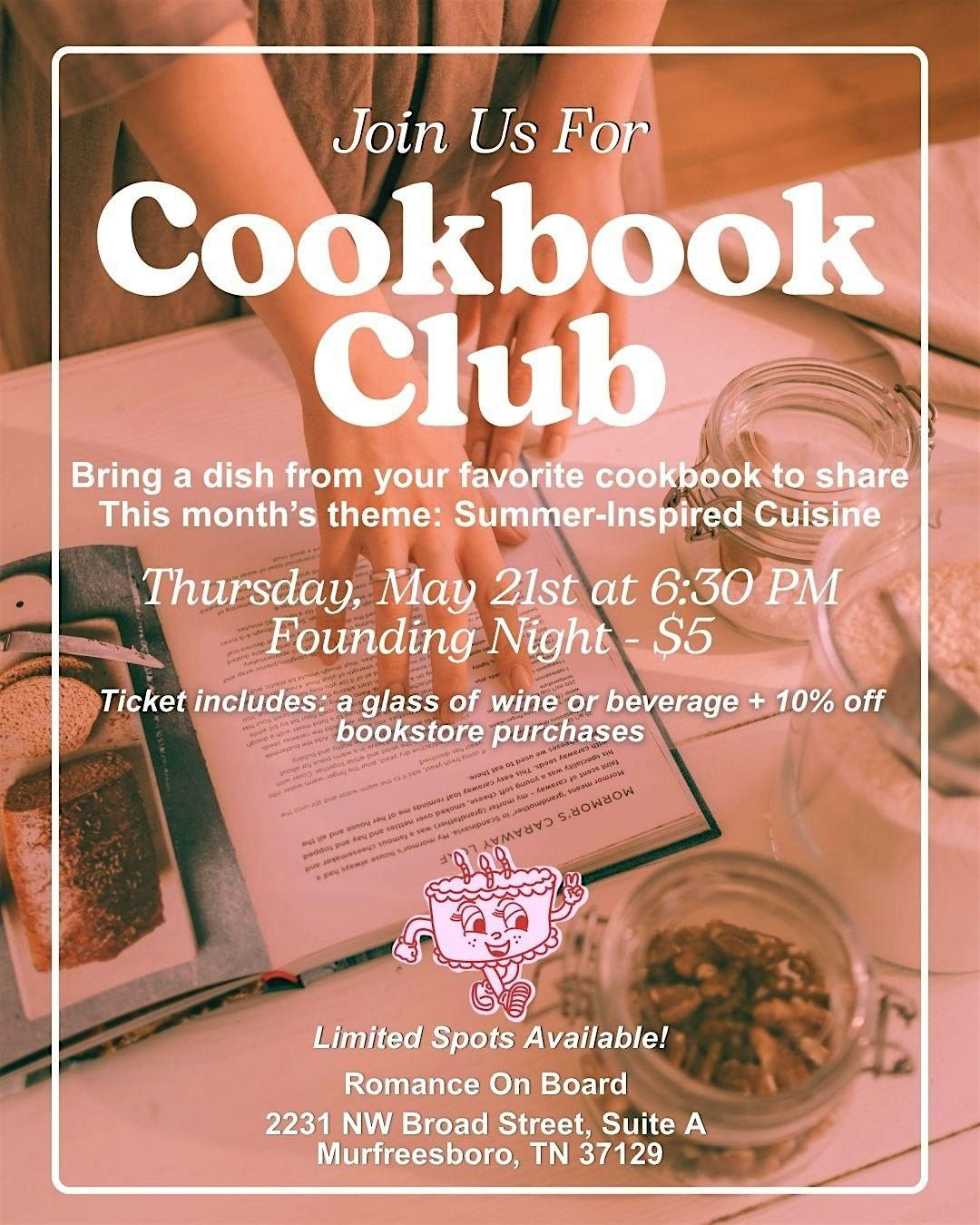 Join us for our first-ever Summer Inspired Cookbook Club, where guests bring a dish from their favorite cookbook to share. Choose a category, create a summer-inspired recipe, and enjoy a night of great food, conversation, and connection.