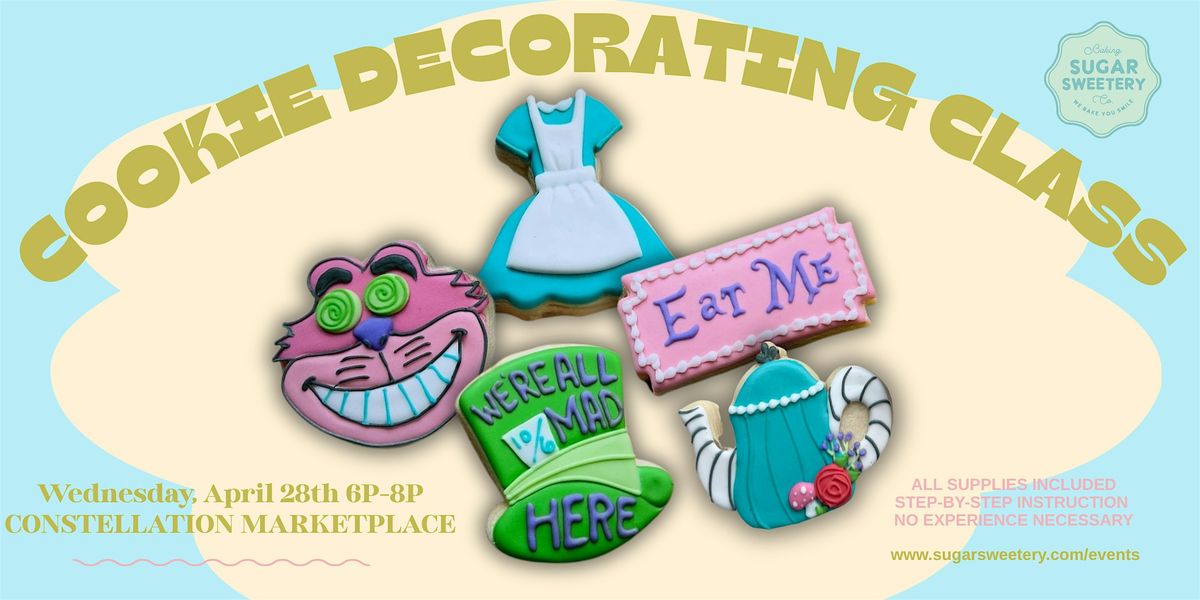 In this hands-on cookie decorating class, you’ll transform simple cookies into edible works of art inspired by a curious tea party setting.