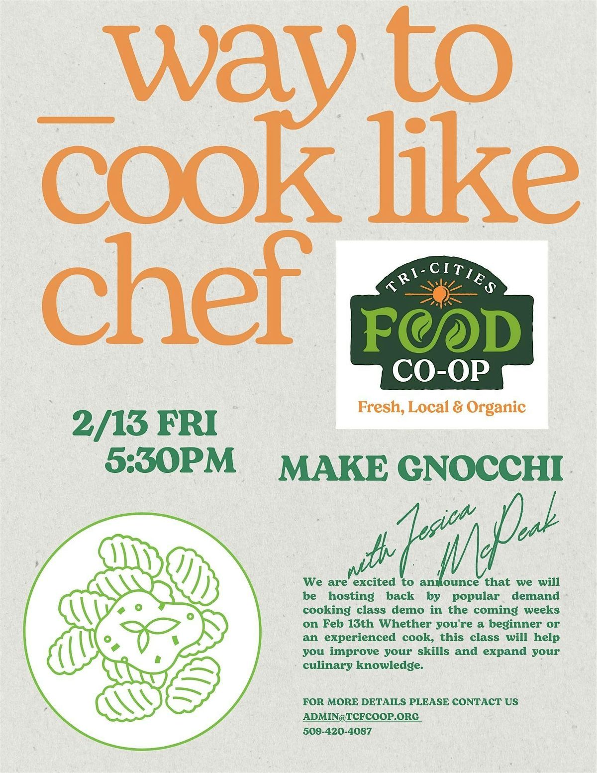 Join us for a fun and tasty in-person cooking demo where you'll learn how to make fluffy, delicious gnocchi from scratch via a demo by Interim Manager Jessica McPeak from her grandmothers recipe! Perfect for food lovers and kitchen newbies alike. Don’t miss out on picking up some great tips and tricks in a relaxed, friendly setting. Come hungry includes soup, your choice of beer or wine and ingridents to make your own gnocchi at home and ready to have a blast!