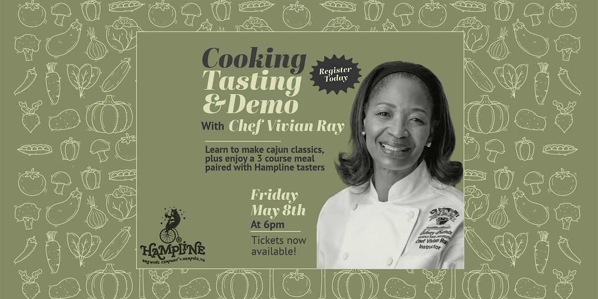 Introducing a new type of event at Hampline, a Cooking Tasting & Demo! We will have Chef Vivian Ray leading a cooking class, teaching the cajun classics, like gumbo, etoufee, and pralines. You'll be learning all her tips and tricks, while enjoying a 3 course meal paired with Hampline tasters along the way! Get your tickets now to spruce up on your cooking skills, just in time to show them off for Mother's Day!
