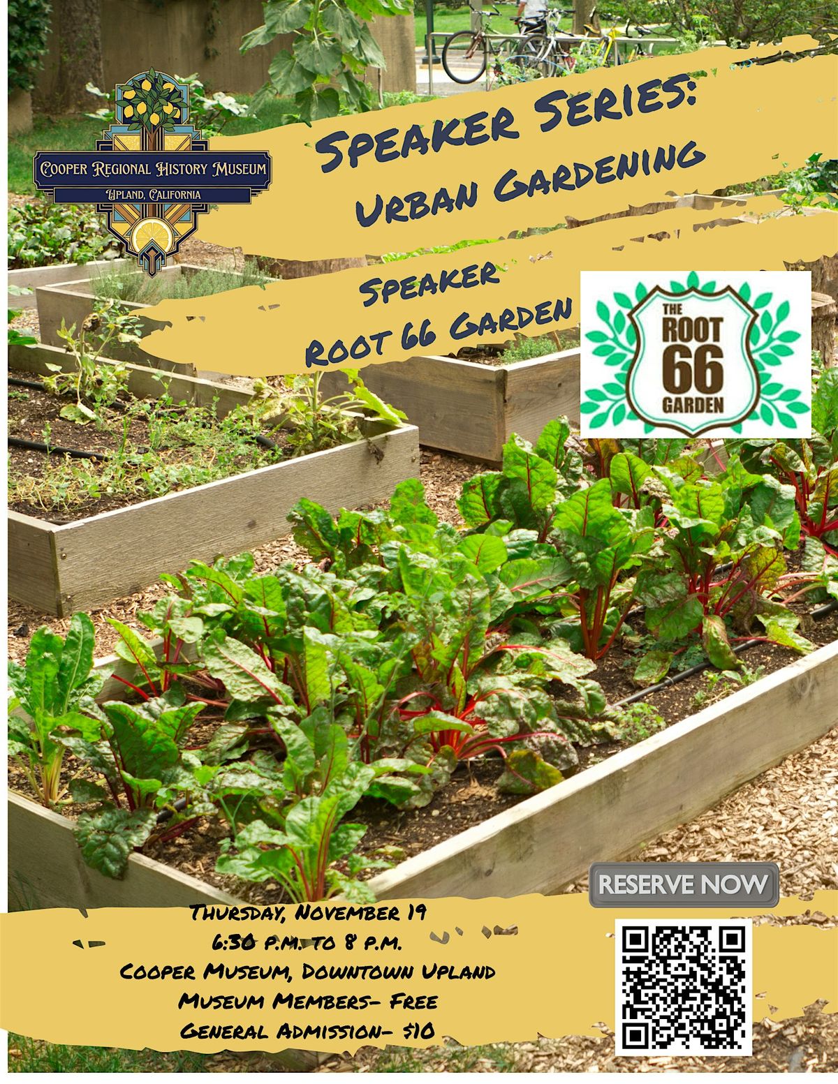 Join us for an inspiring evening focused on the green future of our community with the experts from The Root 66 Garden. With their deep roots in local agriculture and a commitment to food sovereignty in the Inland Empire, the Root 66 team will share how to transform small urban spaces into thriving, productive landscapes.
