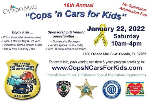 Come out to our 16th Annual Car Show - one of the largest in Central Florida with over 200 vehicles on display. Free Admission for the Entire Family!Something for everyone - Food, Vendors, Law Enforcement displays. Bring the kids to our interactive Kids Zone. We’d love to see you there! Check it out!