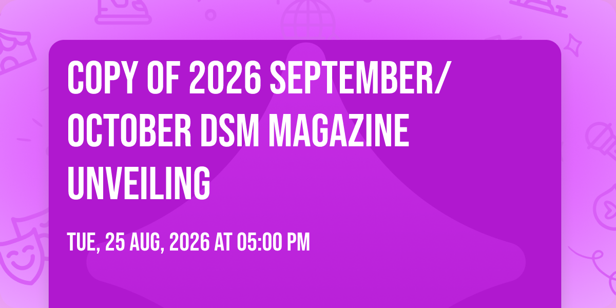 Please join us on Tuesday, Aug. 25, at On With Life, for the unveiling of the September/October issue of dsm magazine.