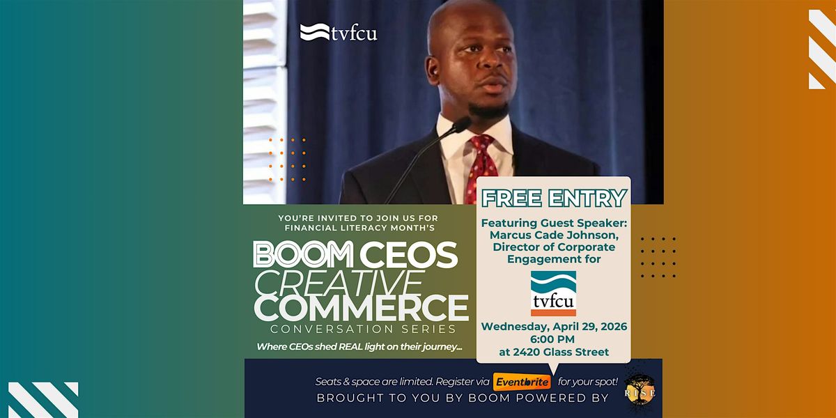 Join us at BOOM for a bold new series that brings the spotlight to minority entrepreneurs, innovators, and business leaders who are reshaping the greater Chattanooga’s creative economy. The BOOM CEOs: Creative Commerce Conversation Series invites local CEOs and founders to share unfiltered stories of resilience, risk, and real success.