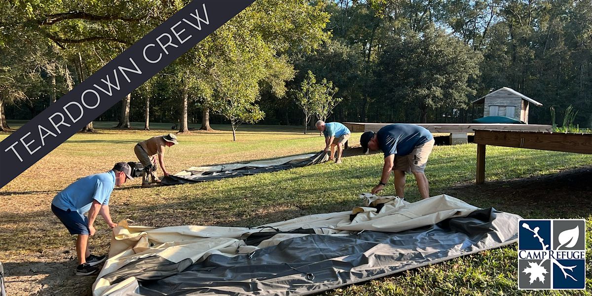 Want to help Camp Refuge behind the scenes? We're looking for those with a heart for Jesus who want an opportunity to serve. Teardown crew responsibilities include teardown and storage of various tents, furnishings, bedding, decor, and more.