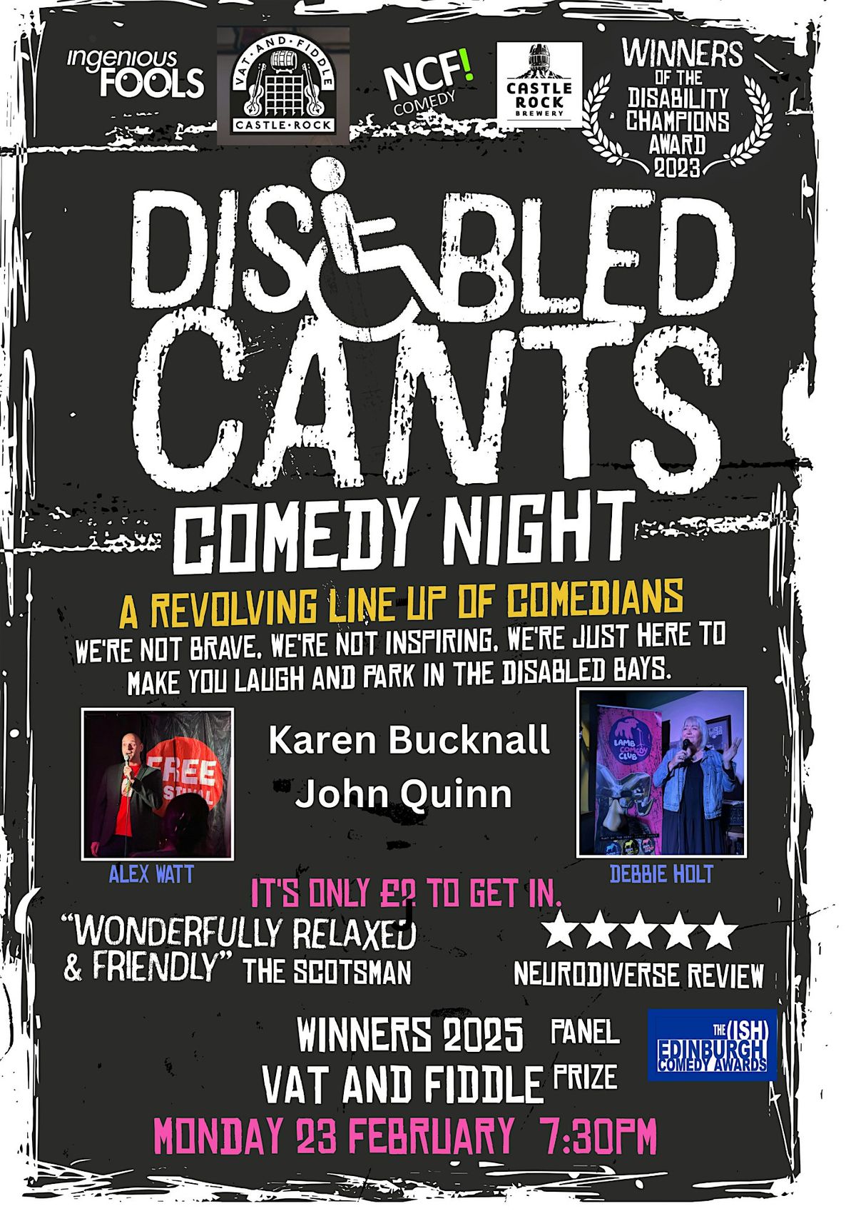 Award-winning comedy from Disabled Cants! A revolving line-up of disabled comedians bringing laughter