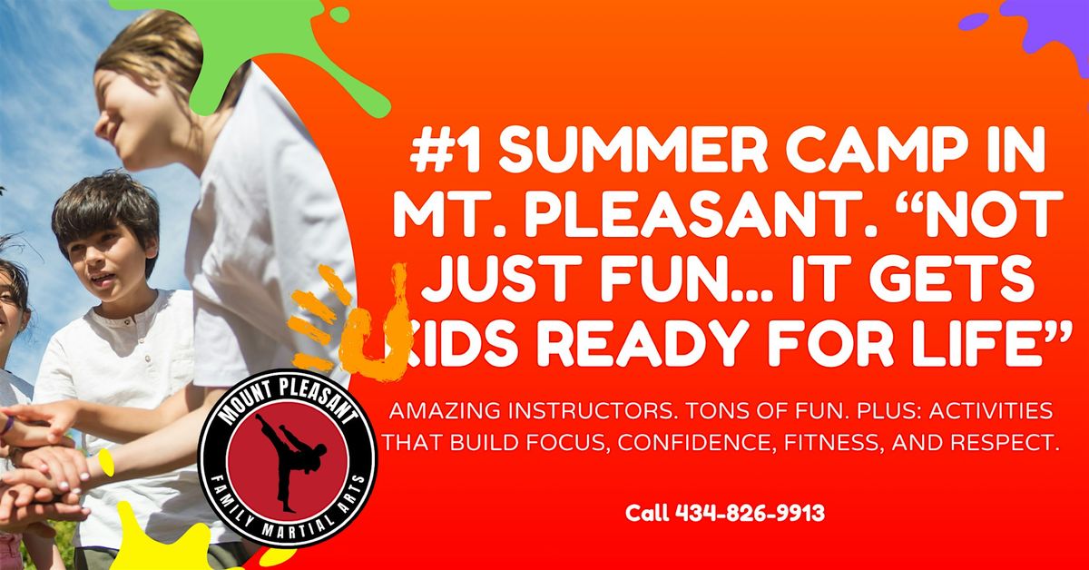 Get ready to punch, kick, and have a blast at our Karate Summer Camp at Mount Pleasant Family Martial Arts! This is an awesome chance to learn cool moves, boost your confidence, and make new friends all in person. Whether you're a beginner or a black belt, there's something fun for everyone. Don't miss out on an action-packed summer filled with energy and smiles! Ages 5 and up and this is a Monday through Friday camp from 8am to noon!