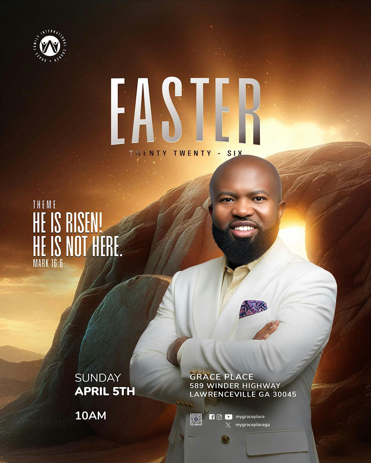 come join us this Easter at our Grace Place a community of friends and families who have received the gift of salvation. Easter is the time for us to remember what Jesus has done for us. It will be great to see you and your family worship with us
