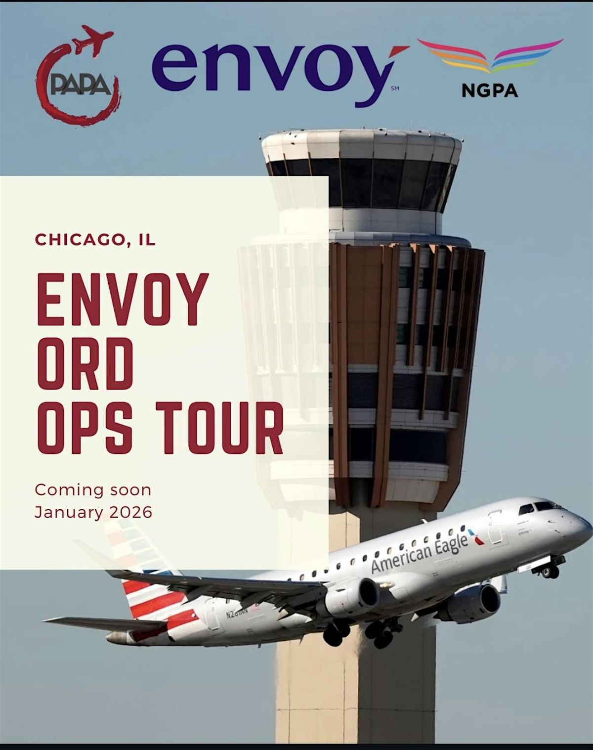 DISCLAIMER: Event time and date is subjected to change by Envoy Air Inc. ORD Operations Management, and the event can be delayed or cancelled due to weather, staffing, or operational needs. If a delay of the Envoy ORD Operations Tour is to be delayed, we will let you know immediately, and you may choose to either continue to be a part of the tour or cancel your reservation for a full refund. If the Envoy ORD Operations Tour is to be cancelled, then we here at PAPA will issue a full refund as soon as possible.
