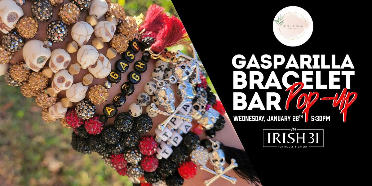 Welcome to the Gasparilla Bracelet Bar Pop-Up! Join us at Irish 31 Pub on Wednesday January 28th at 5:30 PM for a fun night of Gasparilla bracelet making. Get creative and design your own unique bracelets with a huge variety of beads and charms to choose from.