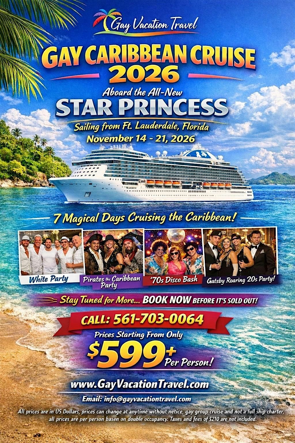 Join us on board the brand-new Star Princess for an unforgettable 7-night adventure through the Caribbean! This luxury cruise combines stunning destinations, exciting entertainment, and exclusive private events hosted by Gay Vacation Travel “Best gay cruises in 2026”
