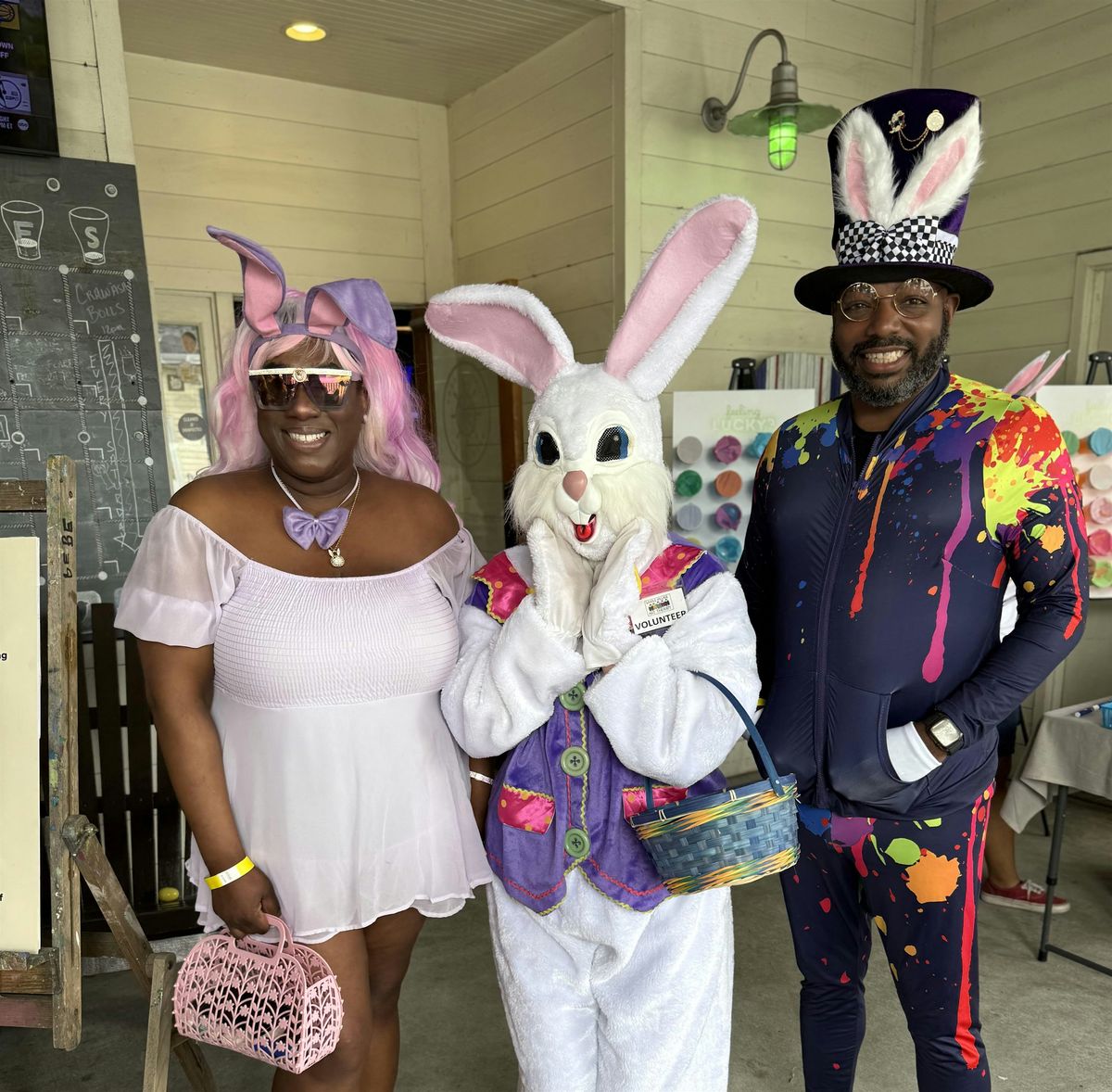Registration, games, party, silent auction, raffle, Easter Bunny