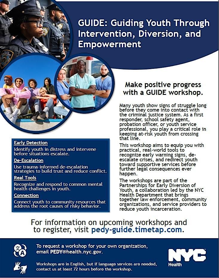 GUIDE workshops are part of the Partnerships for Early Diversion of Youth (PEDY) initiative, a collaboration led by