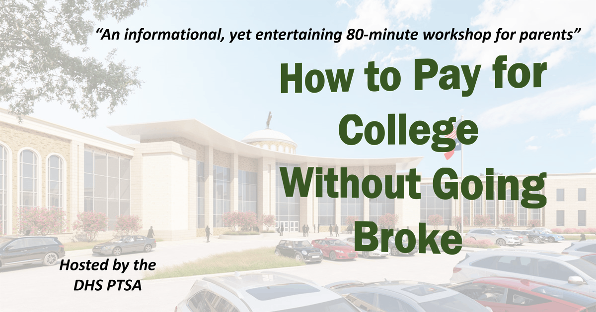 The DHS PTSA is excited to host this college planning class that reveals all the newest ways to beat the high cost of college. Not only will you find this to be the most productive hour you’ve spent planning for college thus far, but you’ll be entertained as well.