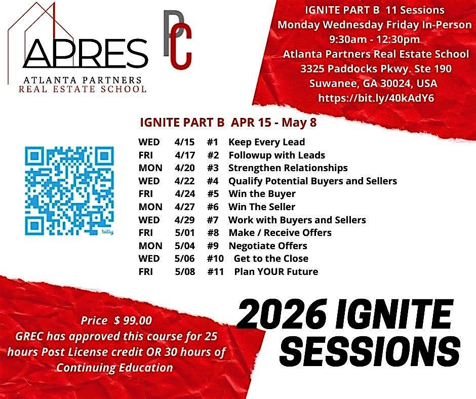 Join us for Ignite - 25H Real Estate Post License Course, an exciting in-person experience designed to sharpen your skills and get you closer to success. Dive into real-world strategies, connect with fellow agents, and fuel your passion for real estate. Don’t miss this chance to ignite your professional journey!