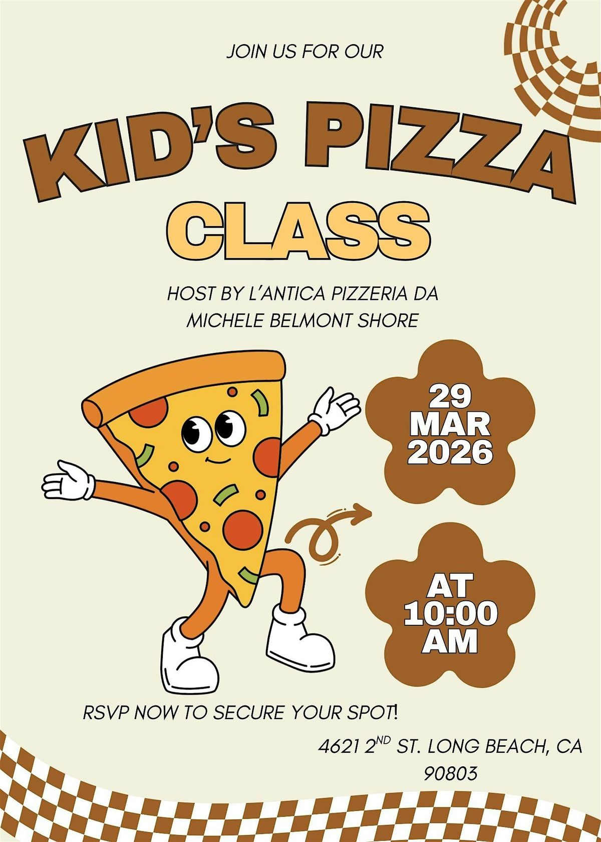 Hey there, little chefs! Join our Kid's Pizza Making Class where you get to create your very own yummy pizza from scratch. It’s a super fun, in-person event perfect for kids who love to get hands-on in the kitchen. We’ll toss dough, spread sauce, add toppings, and bake up some magic together. Bring your appetite and your smile – let's make pizza the fun way!