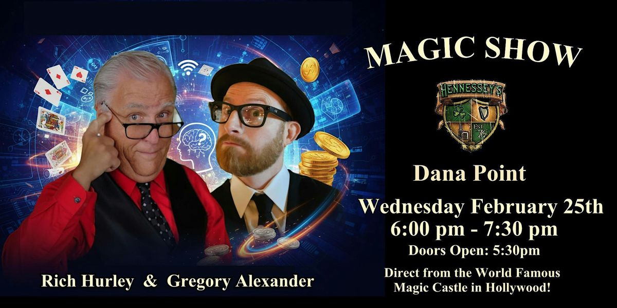 Enjoy the magic and comedy from Rich Hurley and Gregory Alexander, direct from the world-famous Magic Castle in Hollywood.
