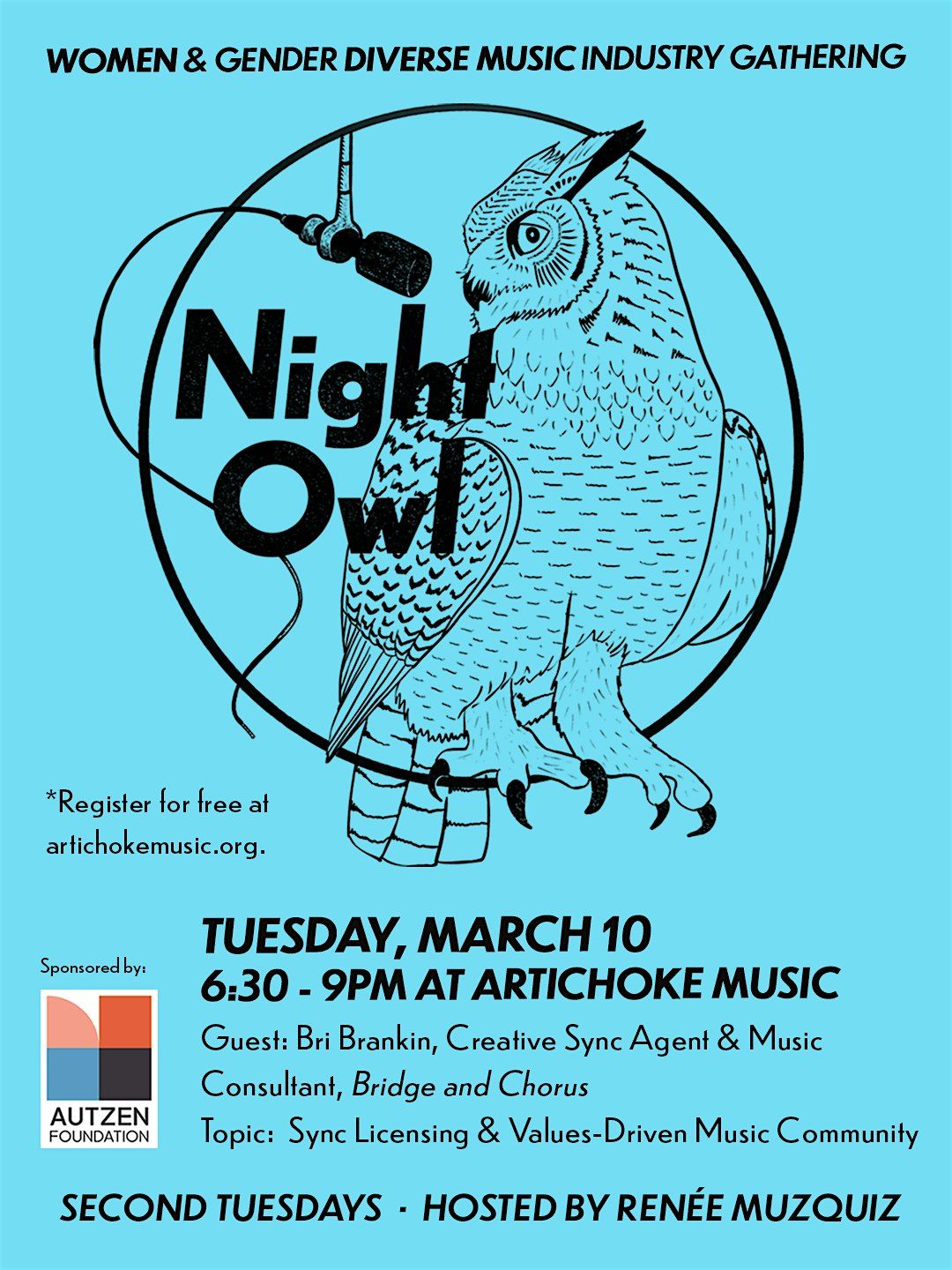 WHAT IS NIGHT OWL?From booking and finding work to gigging and managing mental health, etc., women and gender expansive music professionals experience shared barriers to success and are still wildly underrepresented in the industry. We deserve a collaborative, peer-designated space where we can support each other as we navigate our careers. Let's challenge the systems that work against our success and reimagine more sustainable, equitable business models for us in music.
