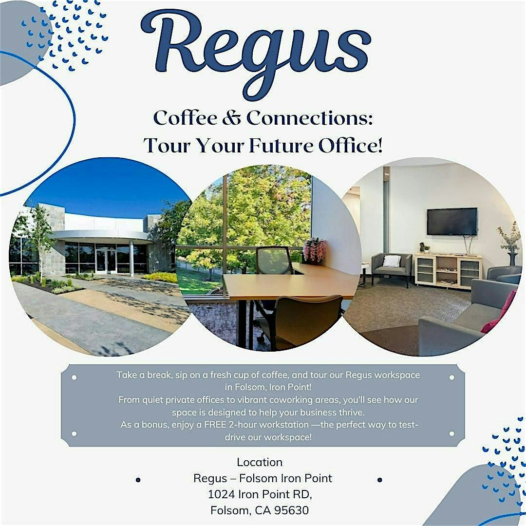 Experience Coffee & Connections at Regus Folsom Iron Point—a relaxed open house where you can enjoy a fresh cup of coffee while exploring our professional workspace. Tour private offices, coworking areas, and meeting rooms designed to support productivity and growth. Plus, receive a FREE 2-hour workstation to test-drive the space and see how Regus can elevate your workday.