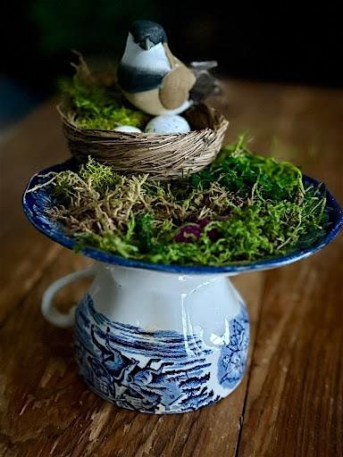 Join us for the perfect mixture of relaxation and lighthearted fun! In this nature-inspired workshop, guests will create charming Tea Cup Bird Baths using whimsical vintage china and preserved moss.