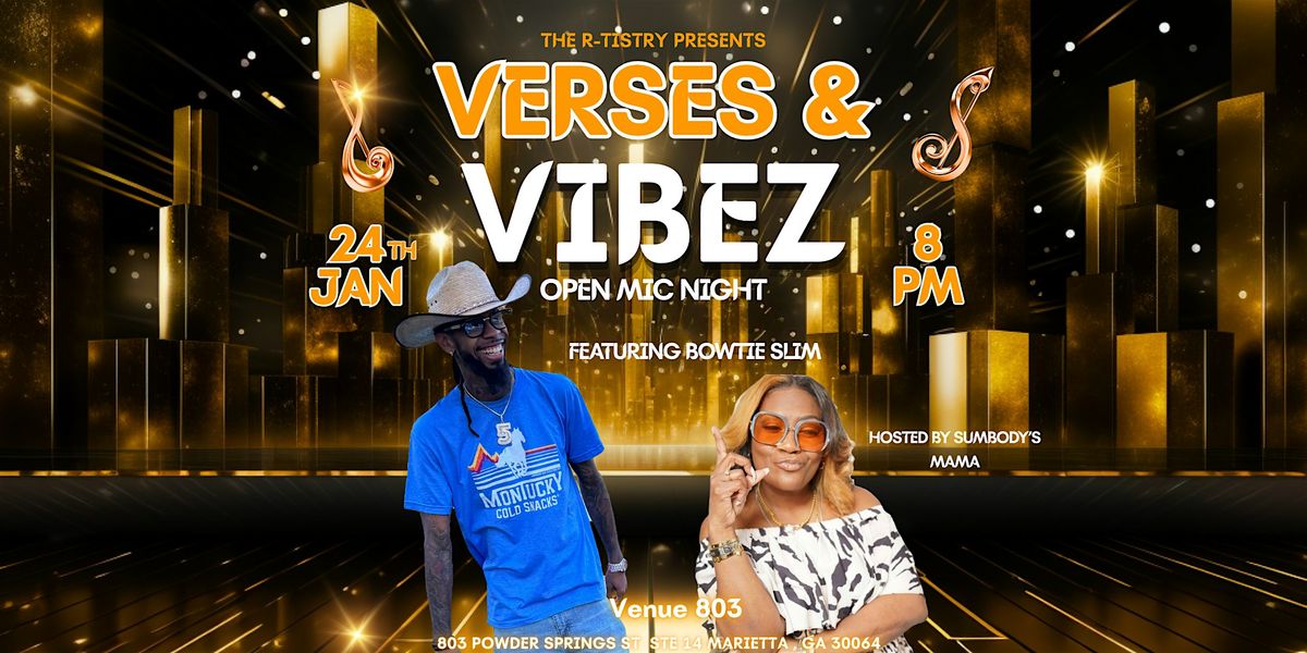 Welcome to The R-Tistry Presents: Verses and Vibez Open Mic Night! Join us for a night of creativity, expression, and good vibes at Venue 803. Whether you're a seasoned performer or a first-time poet, this is the perfect opportunity to share your talent with a supportive audience. Bring your best verses, songs, or stories and let your creativity shine on stage. Don't miss out on this exciting event where artistry meets community. See you there!