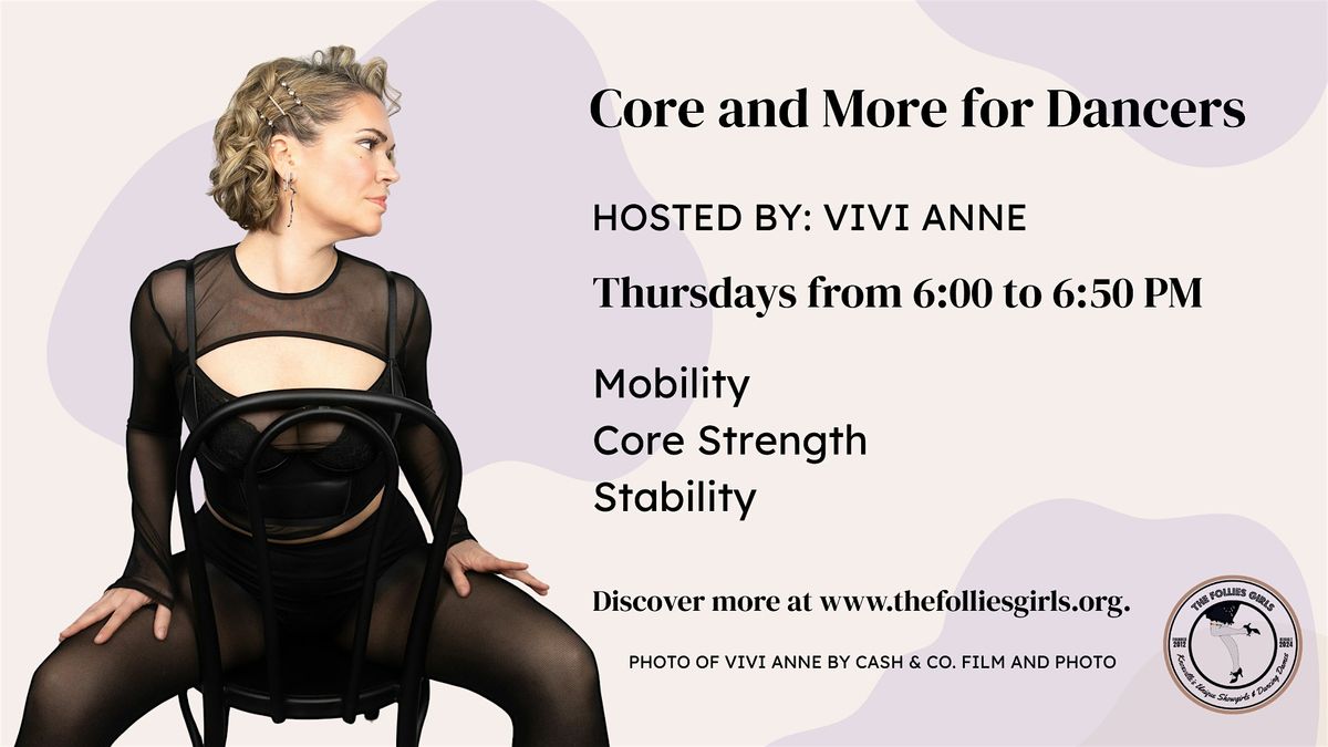 Improve mobility, core strength, and stability with a dance conditioning class designed for all bodies. Focused on functional movement, alignment, and injury-prevention training.