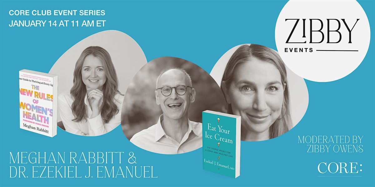 Join us at the CORE Club for an empowering, thought-provoking panel moderated by Zibby Owens, featuring Meghan Rabbitt, author of The New Rules of Women’s Health, and Dr. Ezekiel J. Emanuel, author of Eat Your Ice Cream.