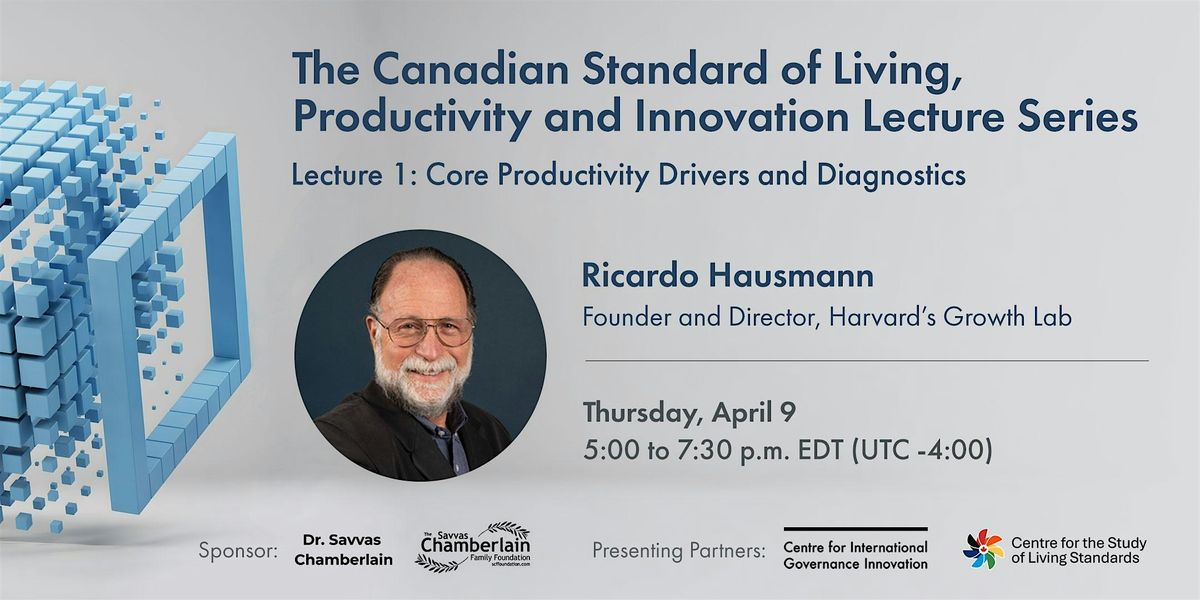 The inaugural lecture of The Canadian Standard of Living, Productivity and Innovation series will be presented by renowned economist Ricardo Hausmann, founder and director of the Growth Lab at Harvard Kennedy School. He will examine how emerging forces including new technologies, alongside enduring factors such as natural resources, are reshaping productivity, prosperity and Canada’s economic trajectory.