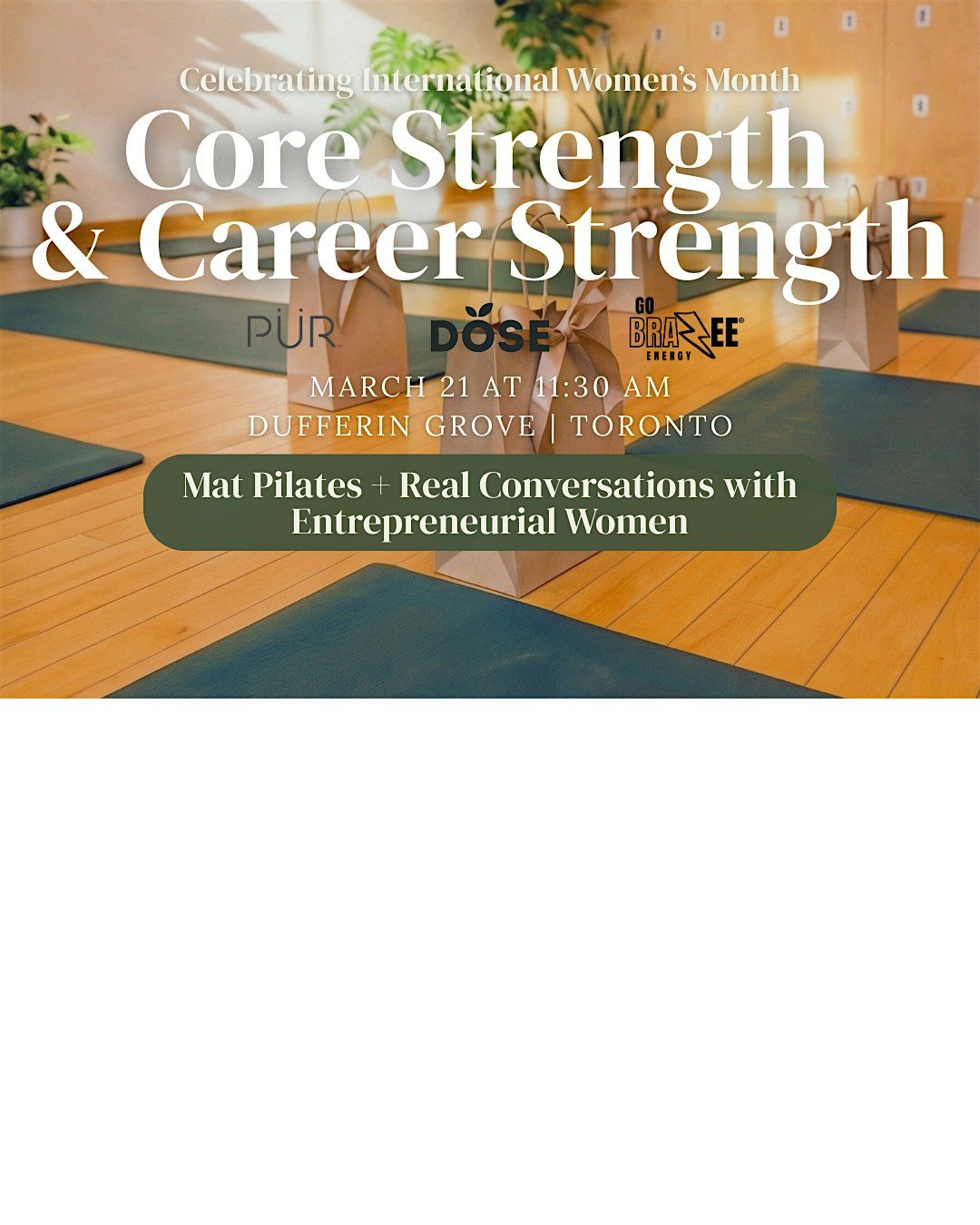 Set in the heart of the city, this curated experience begins with a grounding mat Pilates session to awaken the body (core and glute focused), followed by our signature Entrepreneurial Circle.