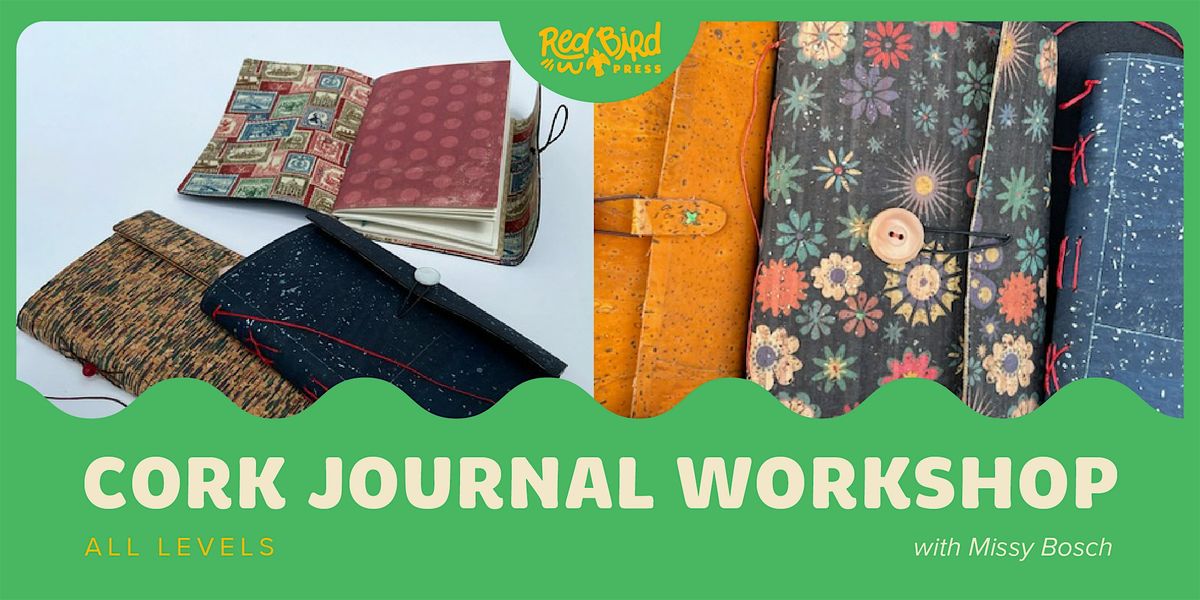 Cork fabric is a beautiful, fun, new material that is a great eco- friendly alternative to leather. In this beginner level class, we will line the cork with cotton fabric and use the versatile long stitch binding to create a three signature journal. Instructions and tips on how to measure covers, create signatures and jigs, and bind the book will be covered. No need to bring anything, all materials and tools will be provided. Taught by Missy Bosch.