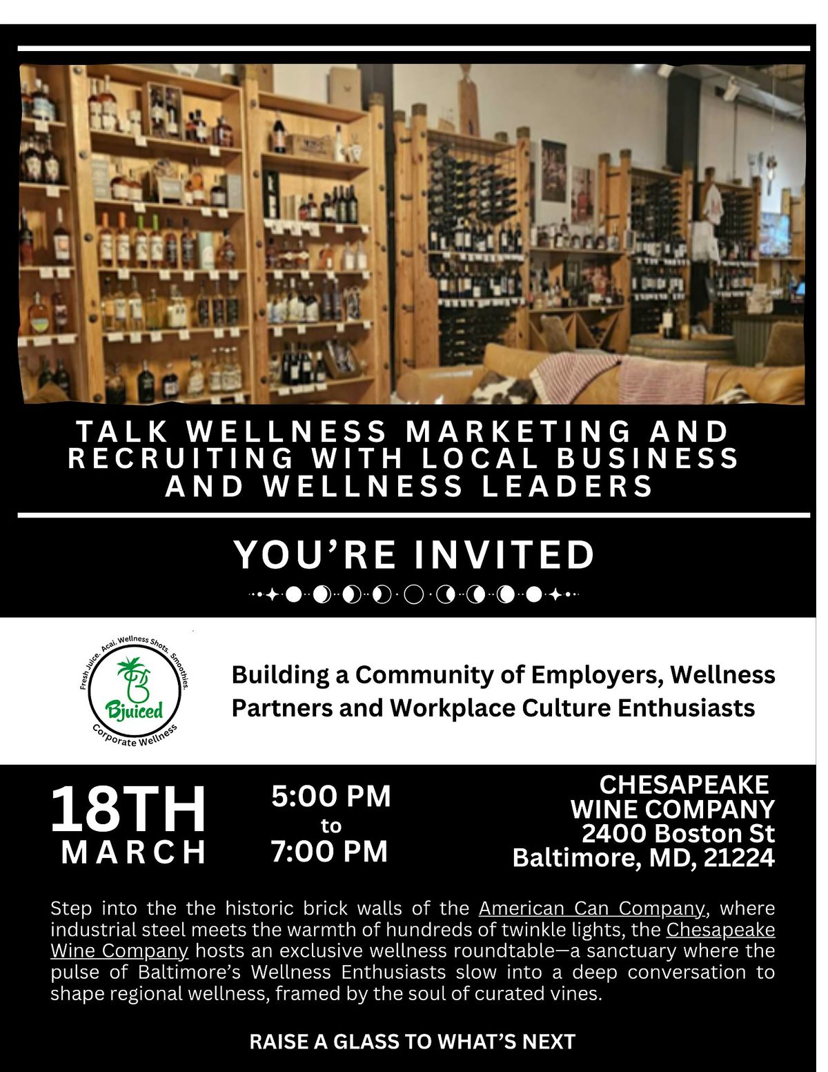 Get ready to dive into the world of corporate wellness and discover how it impacts recruiting, marketing, and leadership. This is an awesome chance to connect face-to-face, share ideas, and learn practical tips to boost your team's health and success. Whether you're leading a team or working in HR or marketing, this event’s got something for you. Don’t miss out on a fun and engaging in-person experience!