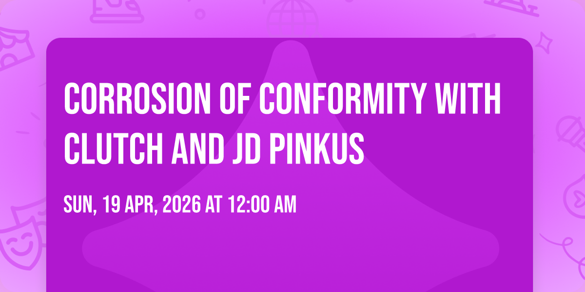 π Location: 42.4936, -96.4092β¨ Enter a world of endless possibilities at Corrosion Of Conformity with Clutch and JD Pinkus, where every moment tells a story! ποΈ The stunning Anthem - Hard Rock Hotel & Casino in vibrant Sioux City, IA transforms into a realm of wonder on April 19th, 2026 at 12:00 AM. π They have crafted an experience that goes beyond the ordinary, combining elements of surprise, delight, and pure entertainment. Every detail has been thoughtfully considered to ensure your journey with us is nothing short of extraordinary. π― Join fellow adventure seekers and memory makers in this celebration of imagination and innovation. π Reserve your spot today and be part of something truly special!