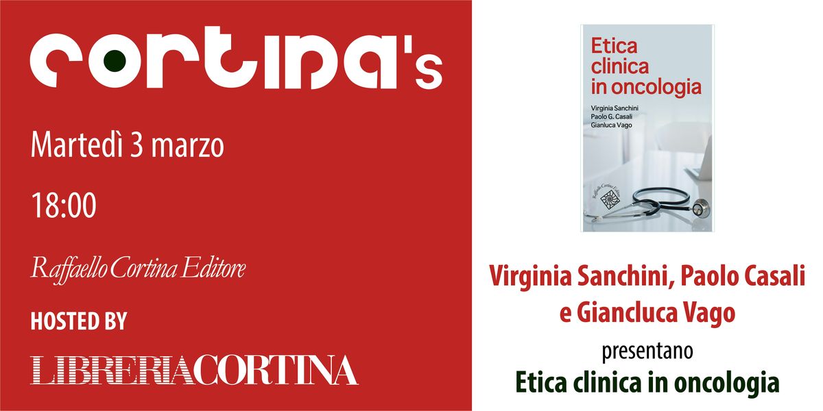 Virginia Sanchini, Paolo G. Casali e Gianluca Vago presentano Etica clinica in oncologia, libro che pone attenzione sulle questioni etiche nel percorso di cura di un paziente oncologico, reputandole una parte fondamentale di quest'ultimo.